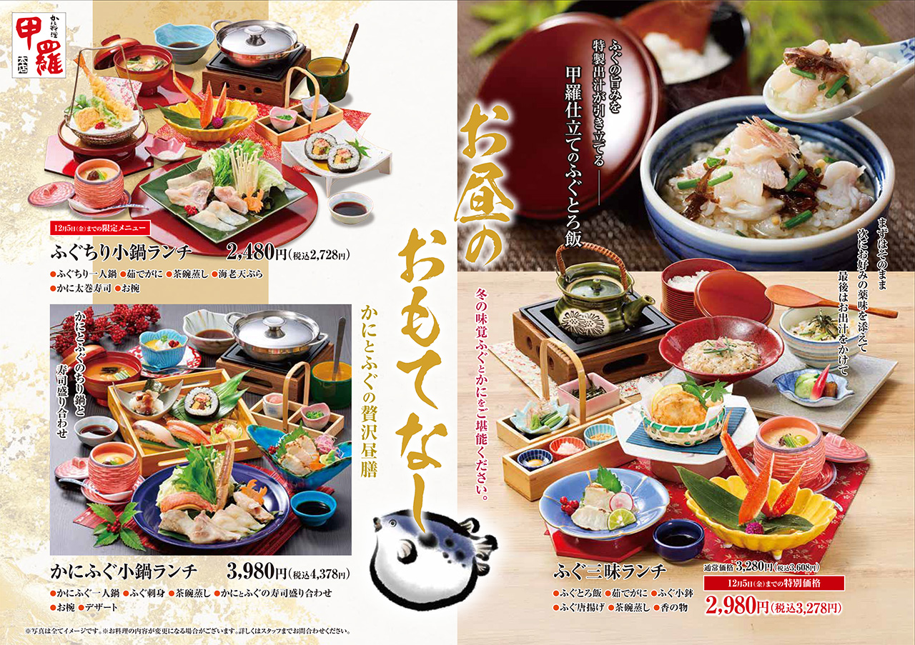 岡山甲羅本店、倉敷甲羅本店、福山甲羅本店の季節限定ランチ